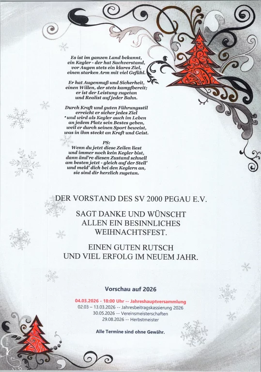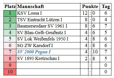 Aktuell spielt die Mannschaft des SV 2000 Pegau, im Kreisverband Kegeln Burgenland, in der Staffel Kreisliga Männer.